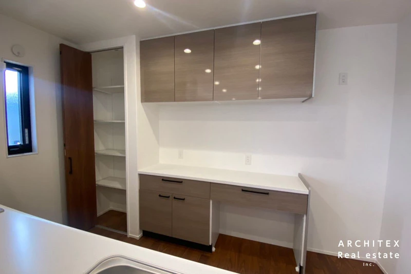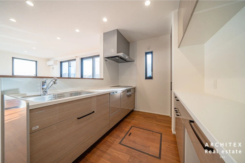 | 設備 | 温水洗浄便座、トイレ2箇所、追焚機能、浴室乾燥機、システムキッチン、カウンターキッチン、IHクッキングヒーター、食器洗浄乾燥機、ウォークインクローゼット、床下収納、シャンプードレッサー、照明器具付き、電気、上水道、下水道、複層ガラス、エアコン、モニタ付インターホン、駐車2台可、オール電化、宅配ボックス、両面バルコニー、バス・トイレ別、パントリー、■土地家屋調査士・司法書士は売主指定※住宅省エネルギー性能証明書を申請する場合、別途申請費用金88000円要■開発許可:5西建第44-51号令和6年2月28日※開発道路に関して、A~E区画各1/5ずつの持分となります。 | ||
