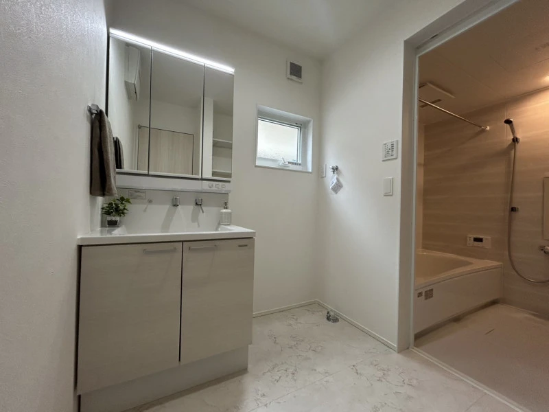 設備 | 温水洗浄便座、トイレ2箇所、追焚機能、浴室乾燥機、システムキッチン、カウンターキッチン、IHクッキングヒーター、食器洗浄乾燥機、ウォークインクローゼット、床下収納、シャンプードレッサー、照明器具付き、電気、上水道、下水道、複層ガラス、エアコン、モニタ付インターホン、駐車2台可、オール電化、宅配ボックス、南面バルコニー、バス・トイレ別、パントリー、収納スペース、■土地家屋調査士・司法書士は売主指定※住宅省エネルギー性能証明書を申請する場合、別途申請費用金88000円要 | ||