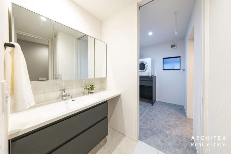 | 設備 | 温水洗浄便座、トイレ2箇所、追焚機能、浴室乾燥機、システムキッチン、カウンターキッチン、食器洗浄乾燥機、ウォークインクローゼット、床下収納、シャンプードレッサー、照明器具付き、電気、上水道、下水道、複層ガラス、エアコン、モニタ付インターホン、駐車2台可、パントリー、バス・トイレ別、収納スペース、■土地家屋調査士・司法書士は売主指定 | ||