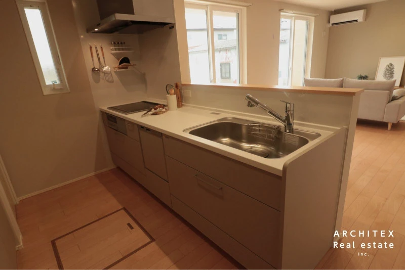 | 設備 | 温水洗浄便座、トイレ2箇所、追焚機能、浴室乾燥機、システムキッチン、カウンターキッチン、IHクッキングヒーター、食器洗浄乾燥機、ウォークインクローゼット、床下収納、シャンプードレッサー、照明器具付き、電気、上水道、下水道、複層ガラス、エアコン、モニタ付インターホン、駐車2台可、オール電化、宅配ボックス、南面バルコニー、パントリー、バス・トイレ別、収納スペース、■土地家屋調査士・司法書士は売主指定 | ||
