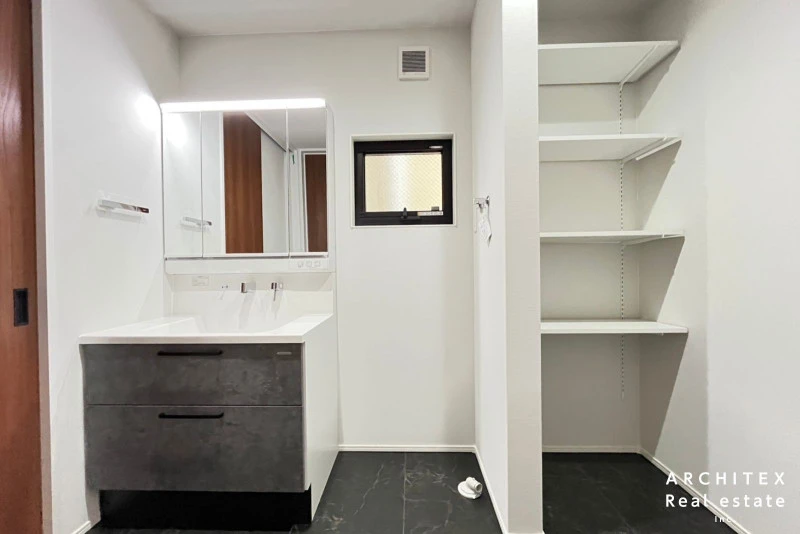 洗面室はLDK2か所から出入り(回遊)できる間取りどなっております