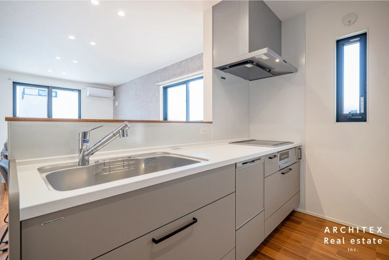 | 設備 | 温水洗浄便座、トイレ2箇所、追焚機能、浴室乾燥機、システムキッチン、カウンターキッチン、IHクッキングヒーター、食器洗浄乾燥機、ウォークインクローゼット、床下収納、シャンプードレッサー、照明器具付き、電気、上水道、下水道、複層ガラス、エアコン、モニタ付インターホン、駐車2台可、オール電化、宅配ボックス、バス・トイレ別、収納スペース、■土地家屋調査士・司法書士は売主指定■開発道路は同開発地内12区域の所有者にて、共有持分1/12を予定(固定資産税等私道負担あり)■開発許可:6令西建第8-8号(令和6年12月27日) | ||