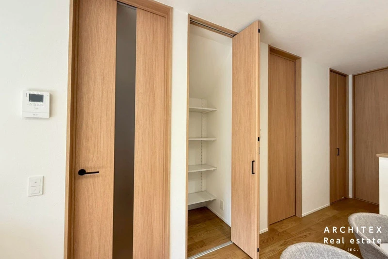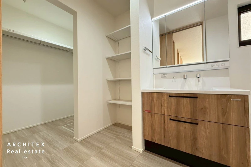 洗面横にはファミリークロークを設置!!家事導線◎な為、家事効率UP♪