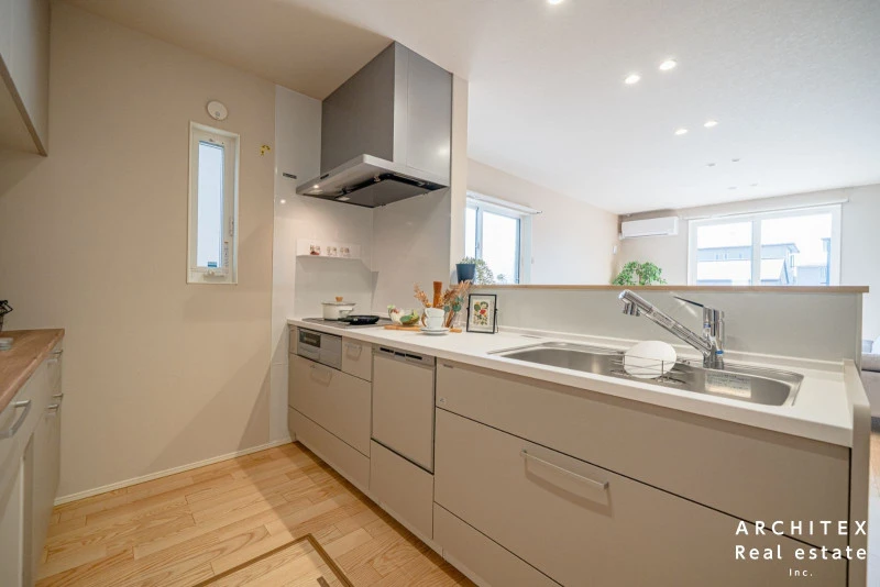 | 設備 | 温水洗浄便座、トイレ2箇所、追焚機能、浴室乾燥機、システムキッチン、カウンターキッチン、IHクッキングヒーター、食器洗浄乾燥機、ウォークインクローゼット、床下収納、シャンプードレッサー、照明器具付き、電気、上水道、下水道、複層ガラス、エアコン、モニタ付インターホン、駐車2台可、オール電化、宅配ボックス、南面バルコニー、バス・トイレ別、収納スペース、■土地家屋調査士・司法書士は売主指定 | ||