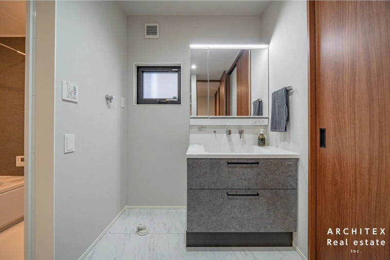 | 設備 | 温水洗浄便座、トイレ2箇所、追焚機能、浴室乾燥機、システムキッチン、カウンターキッチン、IHクッキングヒーター、食器洗浄乾燥機、ウォークインクローゼット、床下収納、シャンプードレッサー、照明器具付き、電気、上水道、下水道、複層ガラス、エアコン、モニタ付インターホン、駐車2台可、オール電化、南面バルコニー、バス・トイレ別、パントリー、浴室1坪以上、宅配ボックス、洗面所、■土地家屋調査士・司法書士は売主指定 | ||