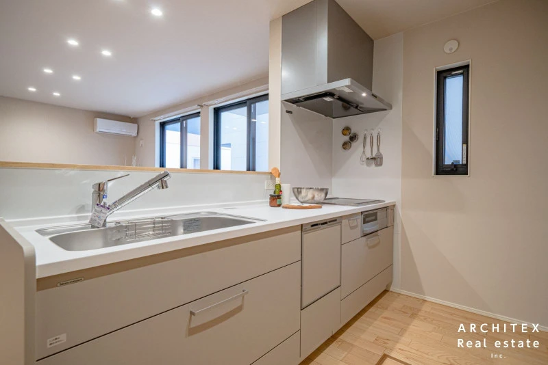 | 設備 | 温水洗浄便座、トイレ2箇所、追焚機能、浴室乾燥機、システムキッチン、カウンターキッチン、IHクッキングヒーター、食器洗浄乾燥機、ウォークインクローゼット、床下収納、シャンプードレッサー、照明器具付き、電気、上水道、下水道、複層ガラス、エアコン、モニタ付インターホン、駐車2台可、オール電化、南面バルコニー、バス・トイレ別、浴室1坪以上、宅配ボックス、洗面所、■土地家屋調査士・司法書士は売主指定 | ||