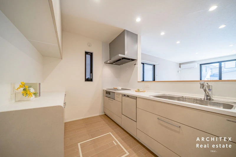 | 設備 | 温水洗浄便座、トイレ2箇所、追焚機能、浴室乾燥機、システムキッチン、カウンターキッチン、IHクッキングヒーター、食器洗浄乾燥機、ウォークインクローゼット、床下収納、シャンプードレッサー、照明器具付き、電気、上水道、複層ガラス、エアコン、モニタ付インターホン、駐車2台可、オール電化、宅配ボックス、バス・トイレ別、収納スペース、下水道、南面バルコニー | ||