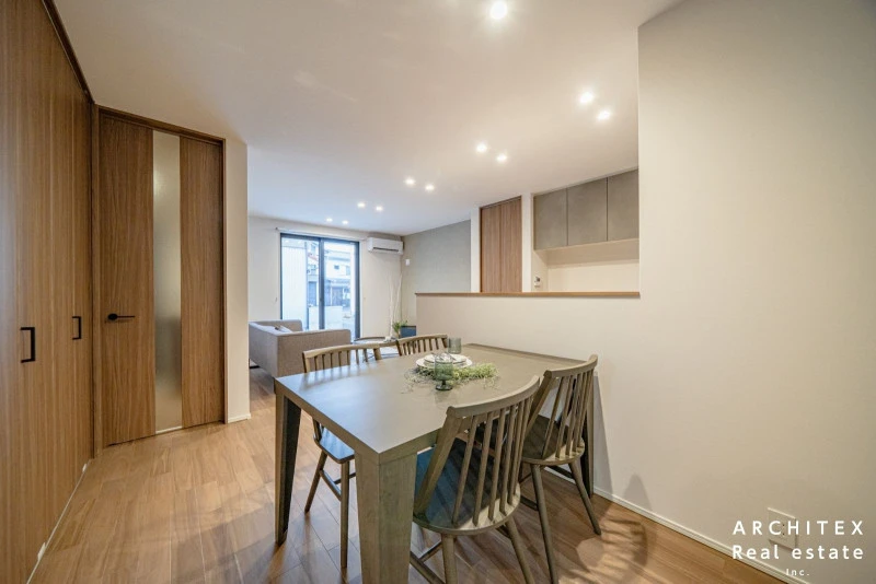 | 設備 | 温水洗浄便座、トイレ2箇所、追焚機能、浴室乾燥機、システムキッチン、カウンターキッチン、IHクッキングヒーター、食器洗浄乾燥機、ウォークインクローゼット、床下収納、シャンプードレッサー、照明器具付き、電気、上水道、下水道、複層ガラス、エアコン、モニタ付インターホン、駐車2台可、オール電化、宅配ボックス、南面バルコニー、収納スペース、バス・トイレ別、パントリー | ||