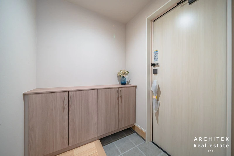 ベビーカーやアウトドア用品を片づけやすい玄関収納で、出入口がいつも気持ちよく保てます。