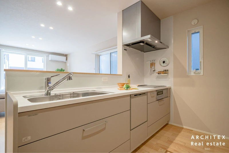 | 設備 | 温水洗浄便座、トイレ2箇所、追焚機能、浴室乾燥機、システムキッチン、カウンターキッチン、IHクッキングヒーター、食器洗浄乾燥機、ウォークインクローゼット、床下収納、シャンプードレッサー、照明器具付き、電気、上水道、下水道、複層ガラス、エアコン、モニタ付インターホン、駐車2台可、オール電化、宅配ボックス、収納スペース、バス・トイレ別、パントリー、■土地家屋調査士・司法書士は売主指定■一部セットバック後引渡し | ||