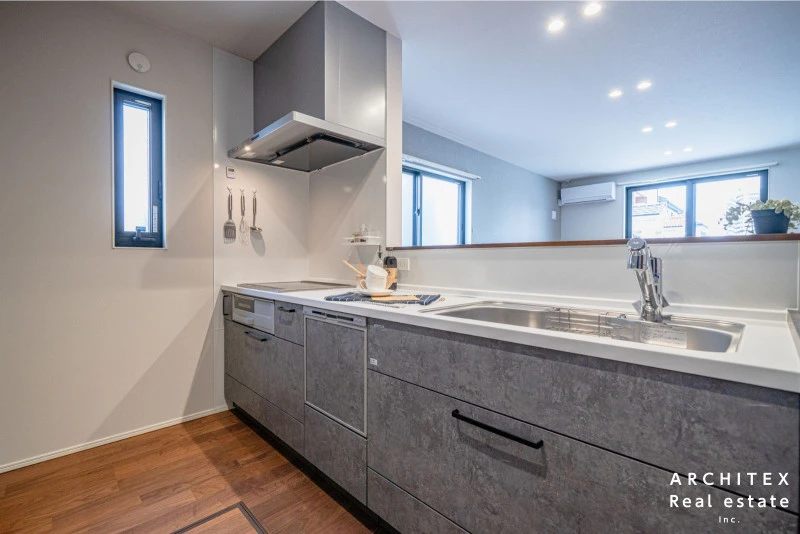 | 設備 | 温水洗浄便座、トイレ2箇所、追焚機能、浴室乾燥機、システムキッチン、カウンターキッチン、IHクッキングヒーター、食器洗浄乾燥機、ウォークインクローゼット、床下収納、シャンプードレッサー、照明器具付き、電気、上水道、下水道、複層ガラス、エアコン、モニタ付インターホン、駐車2台可、オール電化、南面バルコニー、バス・トイレ別、浴室1坪以上、宅配ボックス、洗面所、収納スペース | ||