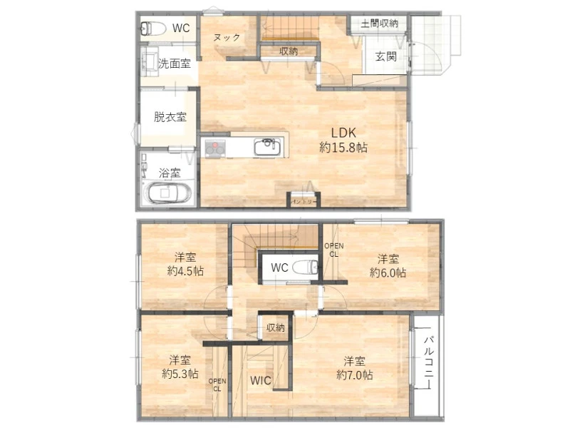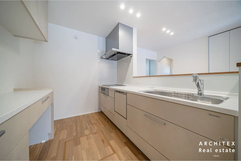 | 設備 | 温水洗浄便座、トイレ2箇所、追焚機能、浴室乾燥機、システムキッチン、カウンターキッチン、IHクッキングヒーター、食器洗浄乾燥機、ウォークインクローゼット、床下収納、シャンプードレッサー、照明器具付き、電気、上水道、下水道、複層ガラス、エアコン、モニタ付インターホン、駐車2台可、オール電化、宅配ボックス、バス・トイレ別、収納スペース | ||