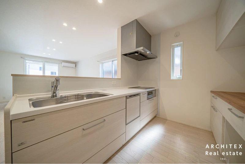 | 設備 | 温水洗浄便座、トイレ2箇所、追焚機能、浴室乾燥機、システムキッチン、カウンターキッチン、IHクッキングヒーター、食器洗浄乾燥機、ウォークインクローゼット、床下収納、シャンプードレッサー、照明器具付き、電気、上水道、下水道、複層ガラス、エアコン、モニタ付インターホン、駐車2台可、オール電化、宅配ボックス、バス・トイレ別、収納スペース | ||