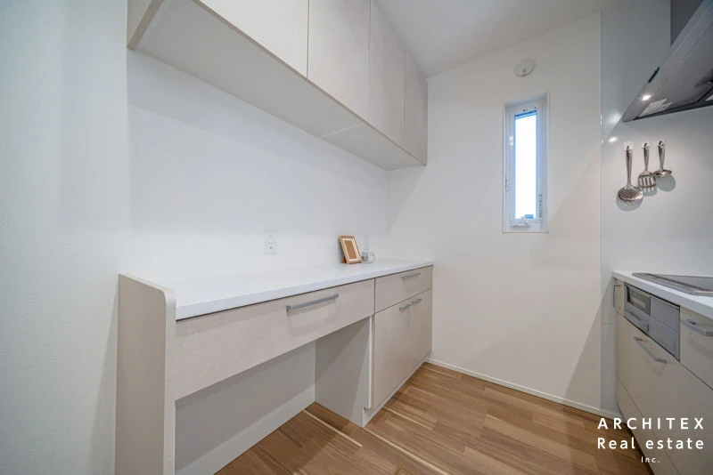 | 設備 | 温水洗浄便座、トイレ2箇所、追焚機能、浴室乾燥機、システムキッチン、カウンターキッチン、IHクッキングヒーター、食器洗浄乾燥機、ウォークインクローゼット、床下収納、シャンプードレッサー、照明器具付き、電気、上水道、下水道、複層ガラス、エアコン、モニタ付インターホン、駐車2台可、オール電化、宅配ボックス、南面バルコニー、バス・トイレ別、収納スペース | ||