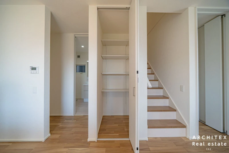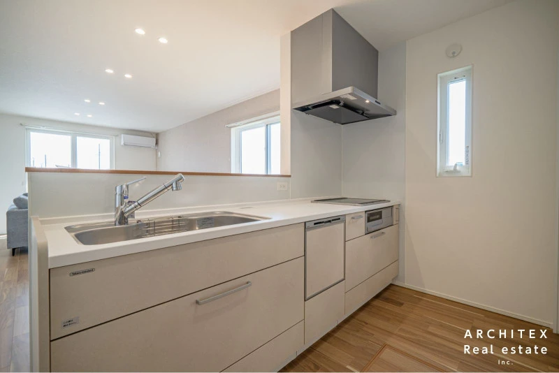| 設備 | 温水洗浄便座、トイレ2箇所、追焚機能、浴室乾燥機、システムキッチン、カウンターキッチン、IHクッキングヒーター、食器洗浄乾燥機、ウォークインクローゼット、床下収納、シャンプードレッサー、照明器具付き、電気、上水道、下水道、複層ガラス、エアコン、モニタ付インターホン、駐車2台可、オール電化、宅配ボックス、南面バルコニー、バス・トイレ別、収納スペース、パントリー | ||