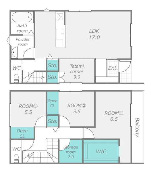 2階には2帖の納戸があり、季節ものもスッキリ収納できます