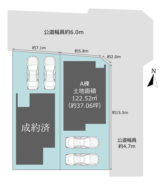 角地 北 間口7.8m 公道 幅6m 東 間口15.5m 公道 幅4.7m |