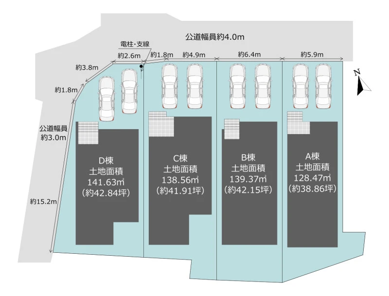 | 諸条件・相談 | ■土地家屋調査士・司法書士は売主指定■本物件地中内に取壊し済の建物の基礎杭が残存しております(地表面から約2~3mでカット済)■D棟敷地内には、電柱・支線が設置される予定です■D棟狭あい協議の結果、面積、長辺が変更される場合があります。■A棟東側道路は私道となっております。(通行に関する覚書あり)※但し、旧所有者との覚書のため、覚書の高極に関しては不明 | ||