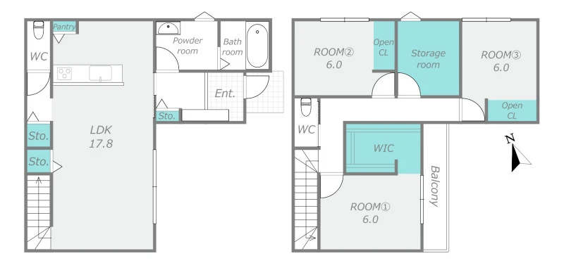 納戸に加え、一階にも収納スペースがあり、季節物や日用品を階ごとに分けて収納でき、部屋をすっきり保てます。